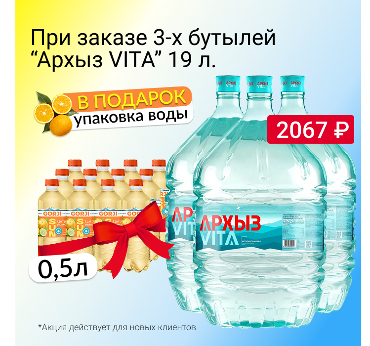 - 3 бутыли «Архыз VITA» 19 литров (в одноразовой таре).