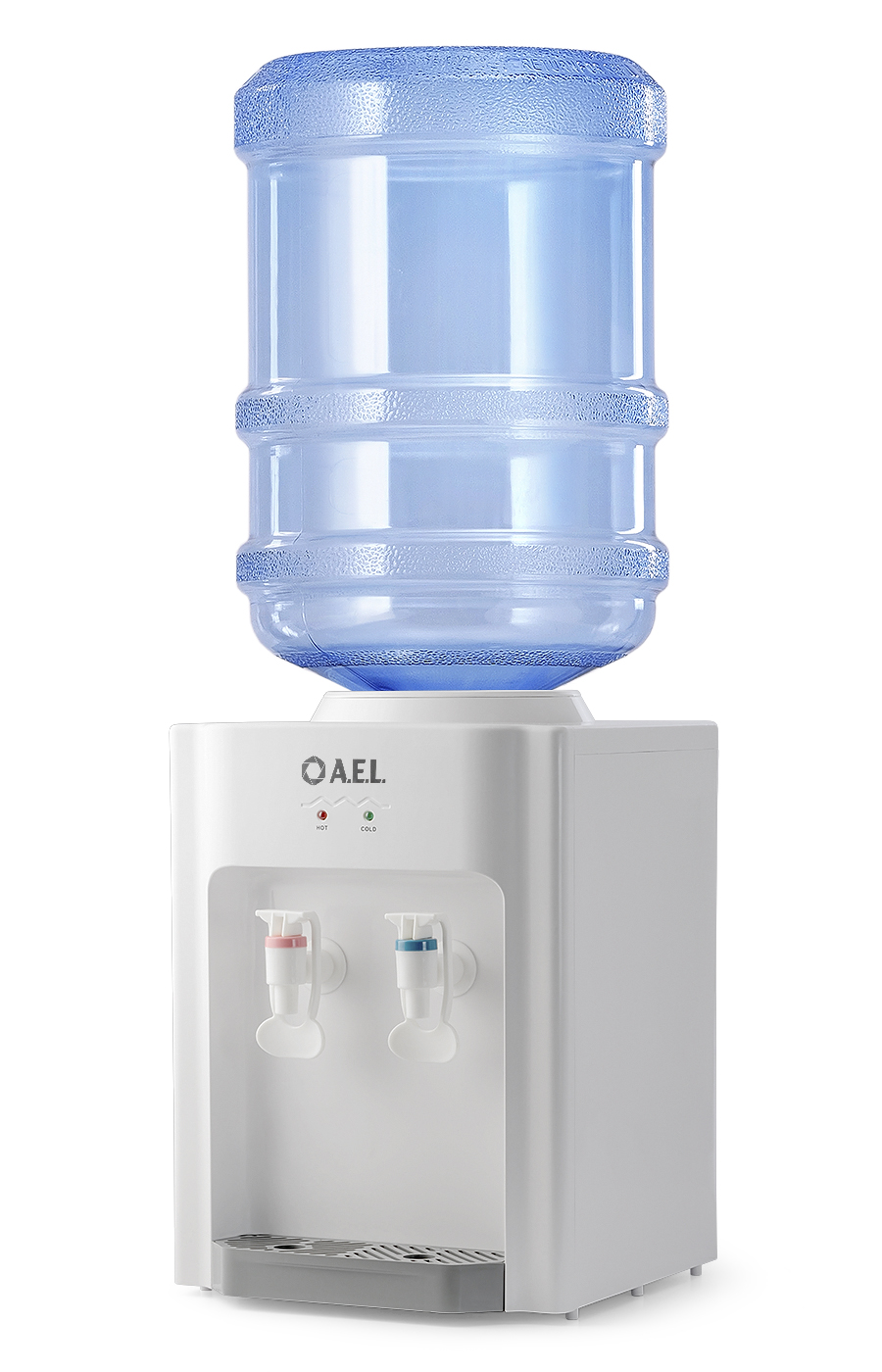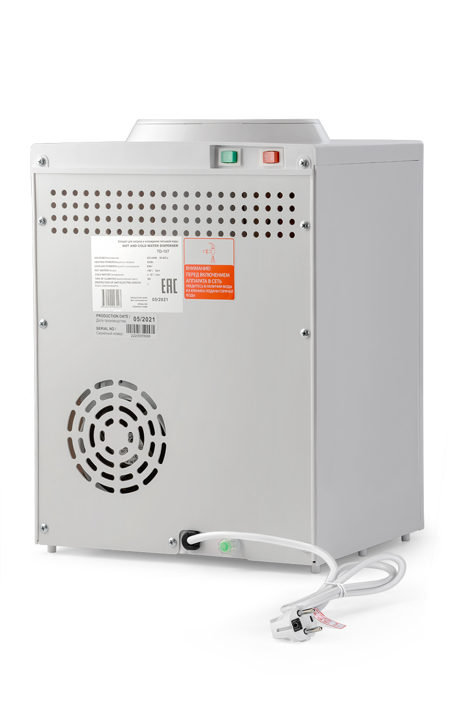 Имеет компактные размеры, что позволяет легко устанавливать его на стол или тумбочку, не занимая много места. Оснащен двумя механическими кранами типа для подачи горячей и охлажденной воды. Для включения и отключения нагрева или охлаждения на задней стенке корпуса расположены специальные тумблеры. Корпус изготовлен из высококачественного пищевого пластика.