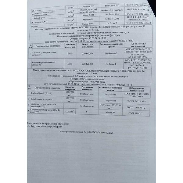 Вода не имеет аналогов в России по уникальному составу макро- и микроэлементов, необходимых для полноценного функционирования организма. В ней содержится 25 элементов, в том числе кремний, селен, бор, молибден, йод, фтор. Все элементы являются природными.