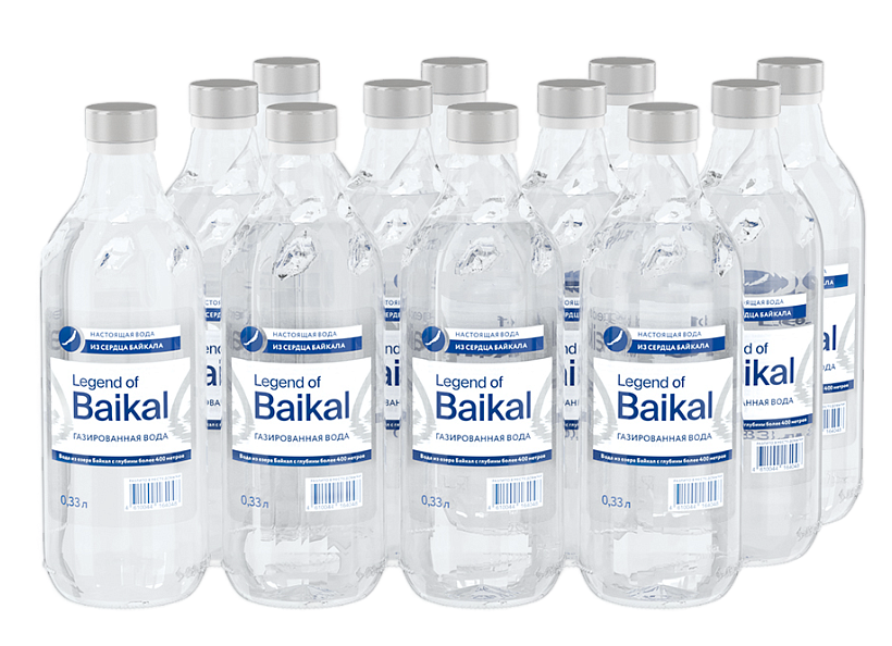 Газированная вода «Legend of Baikal» — сокровище Байкала в стеклянной бутылке (0,33 л). Добывается с глубины 400 м из реликтового водоносного слоя.