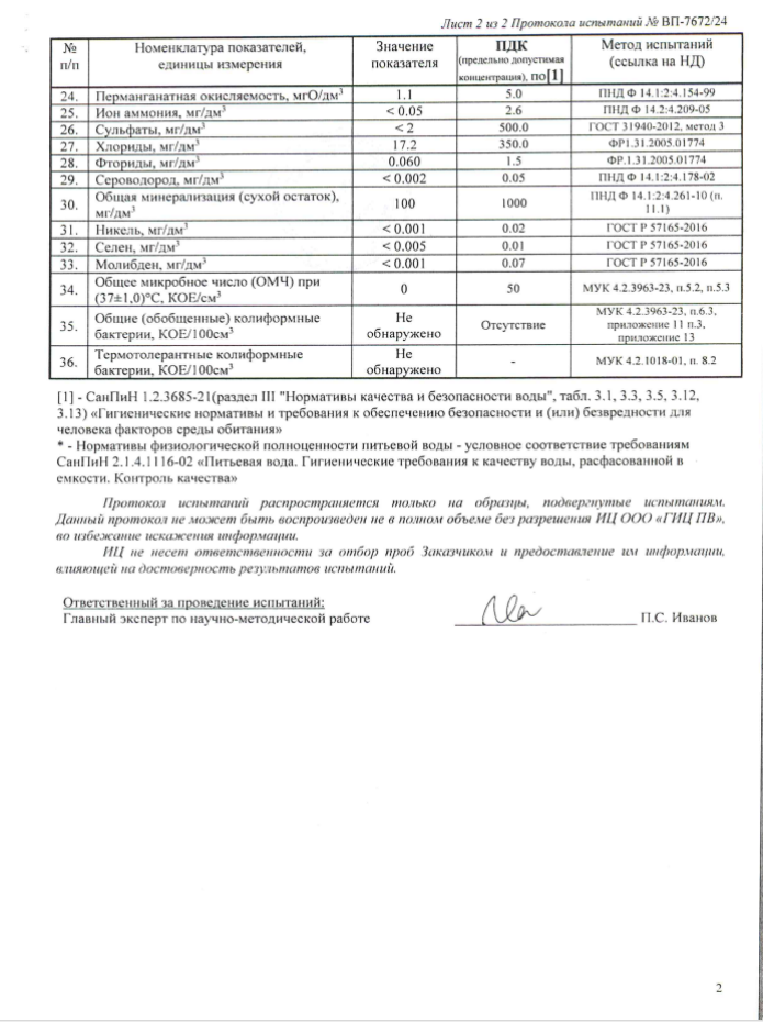 Вода не имеет аналогов в России по уникальному составу макро- и микроэлементов, необходимых для полноценного функционирования организма. В ней содержится 25 элементов, в том числе кремний, селен, бор, молибден, йод, фтор. Все элементы являются природными.